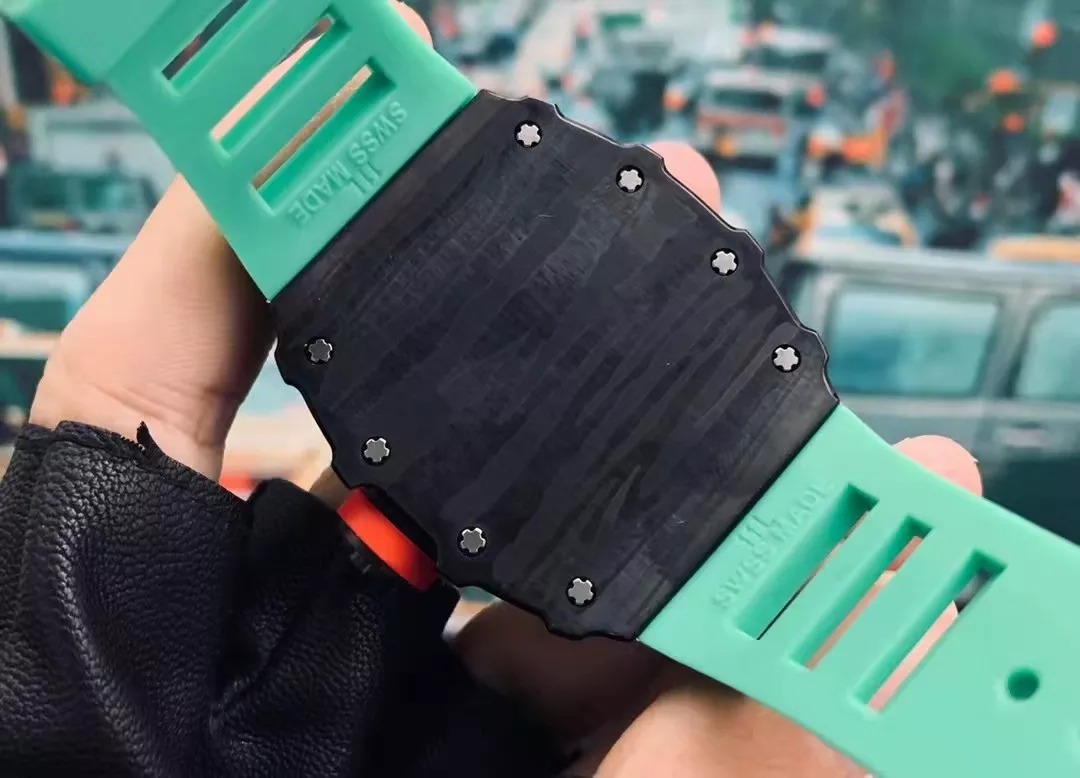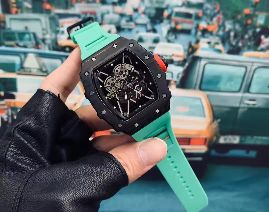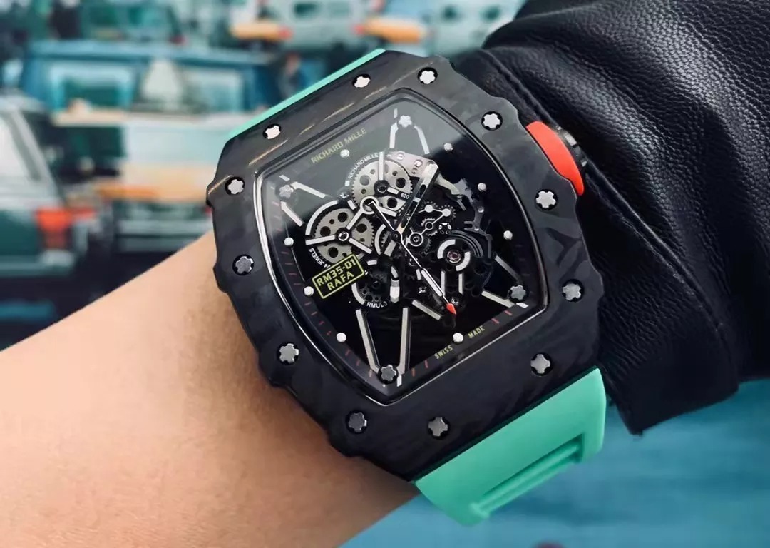 RM 35-01 Black Bezel Red Markers Green Rubber Strap RUML3