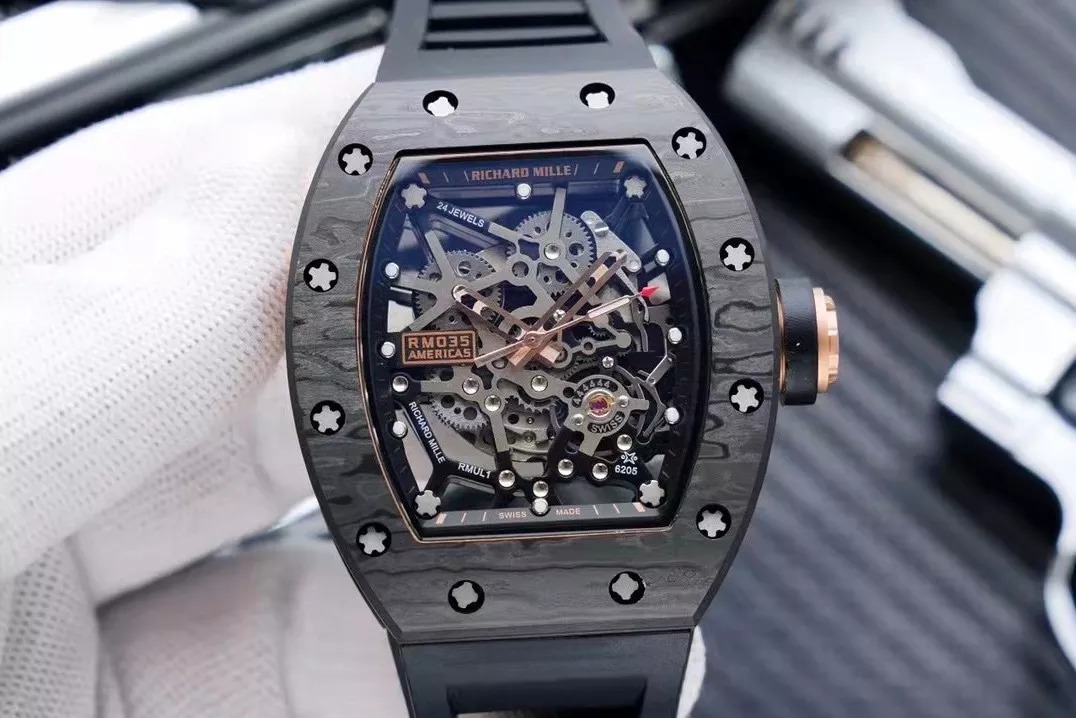 RM 35-02 Black Bezel Rose Gold Hands Black Rubber Strap RUML3