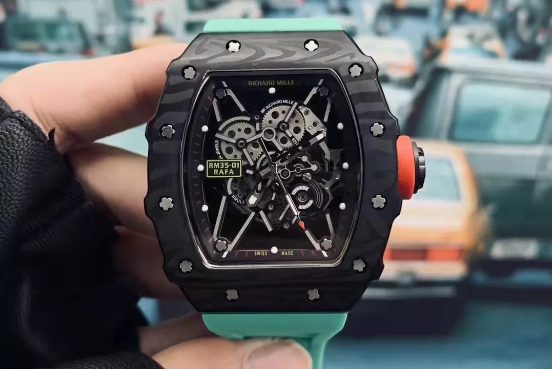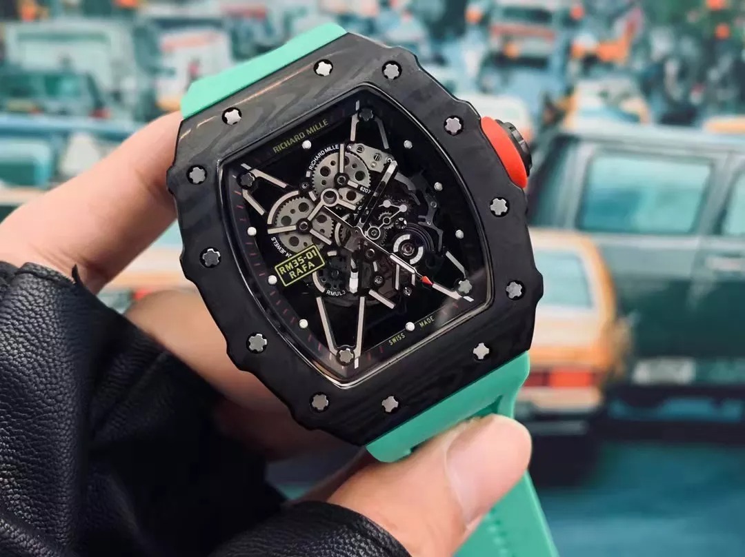 RM 35-01 Black Bezel Red Markers Green Rubber Strap RUML3